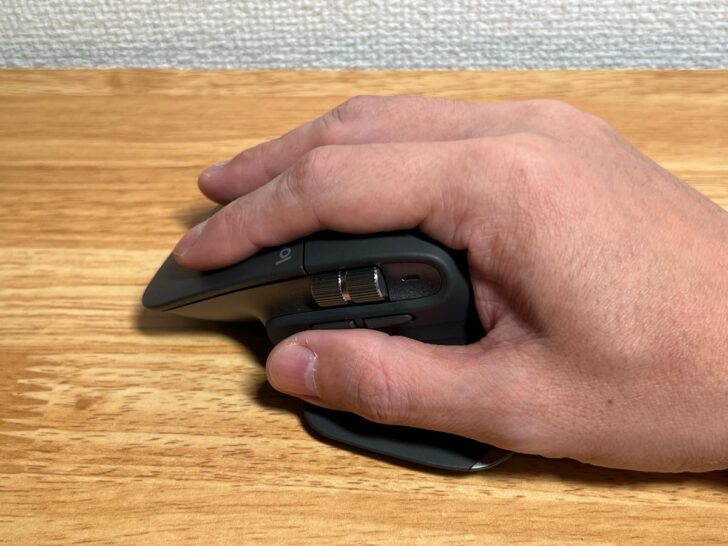 それに対し、MX Master 3sは力を抜いた状態の右手がぴたっとフィットするので、ずっと作業していても疲れにくい実感があります。